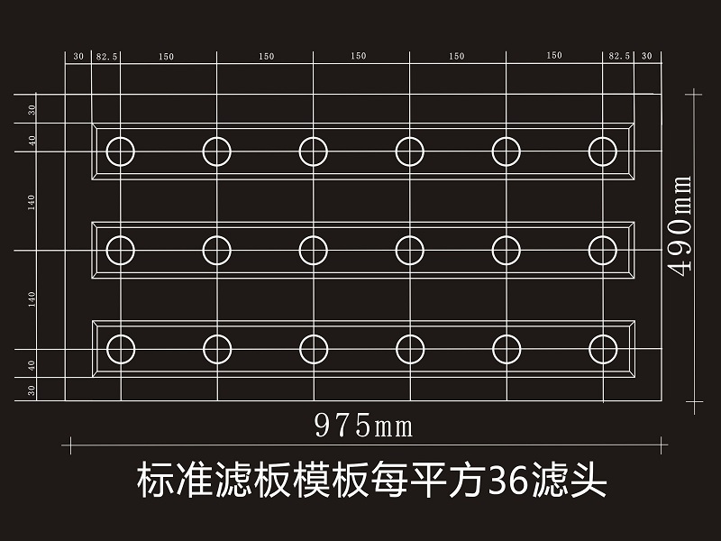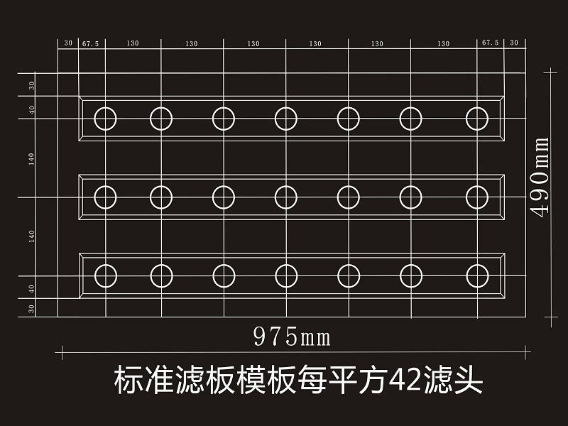 AÐÍÄ£°å³¤¡Á¿í¡Á¸ß£¨975¡Á490mm¡Á55mm£©£¬ºñ¶È3.0mm,Îó²î0.2mm£»¿É°²×°ÂËÍ·ÊýÁ¿18¸ö/¿éºÍ21¸ö/¿é¡£Ï൱ÓÚ36¸öÂËÍ·/©O£¨×ÝÏò¼ä¾à150mm£¬ºáÏò¼ä¾à140mm£©£¬42¸ö¸öÂËÍ·/©O£¨×ÝÏò¼ä¾à130mm£¬ºáÏò¼ä¾à160mm£©ÂËÁºÖÐÐļä¾à1000-1060mm¡£